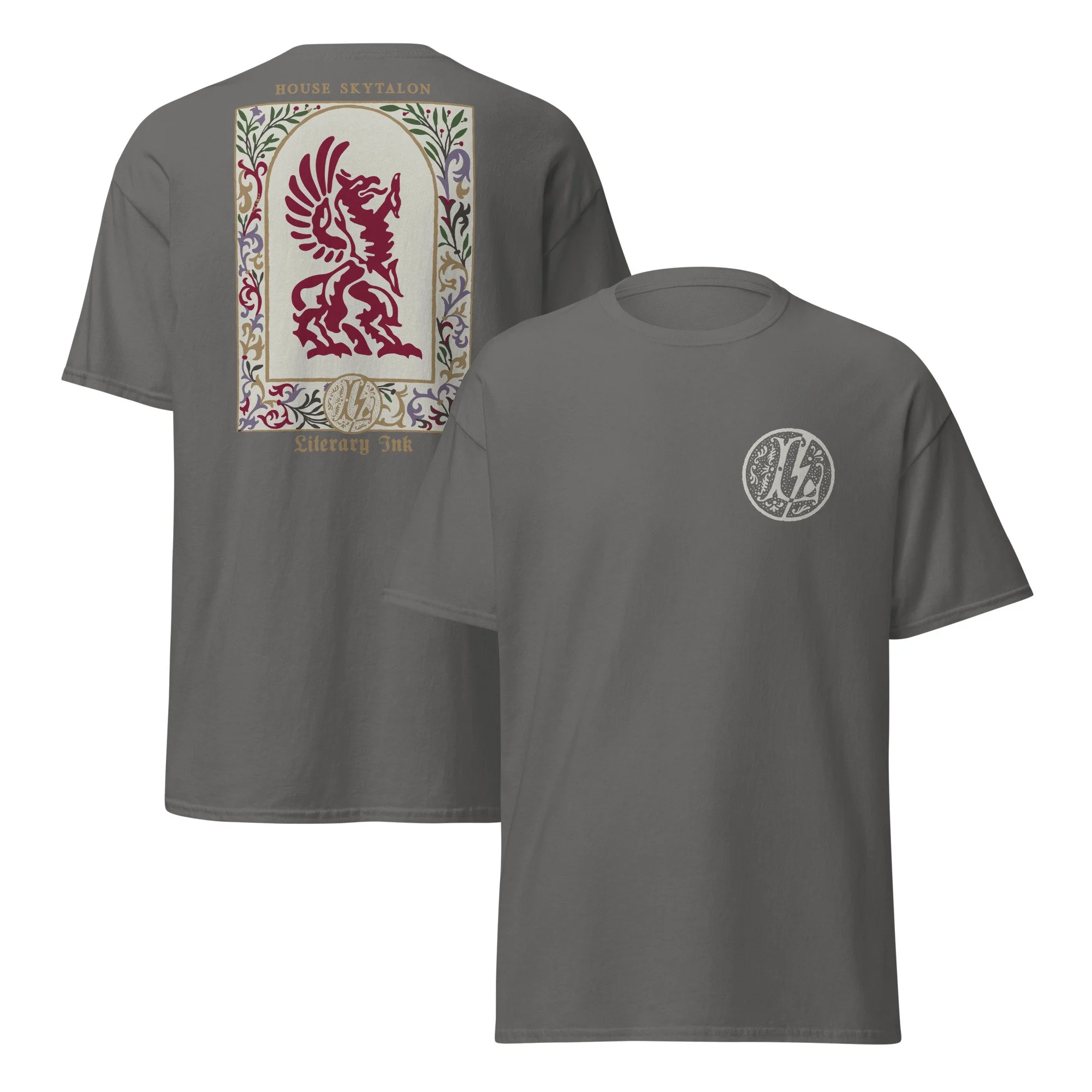 Literary InkMerch Shoppe House Skytalon Clear Filters Categories Select a Category House Skytalon House Leviathan Riders of the Veil House Goldmane House Glitterhoof New for 2027! Sir Tattoodle Lit Classic Logo Year 5 Archive Outer Wear Accessories Decals Hats Tees Filter Clear Filter Houses of the Realm Set 5 of pin buttons from $15.00 Select Size 1.25″ 2.25″ Add To Cart Added! Houses of the Realm Natural Unisex classic tee from $25.00 Select Size S M L XL 2XL 3XL Add To Cart Added! Houses of the Realm Unisex classic tee from $25.00 View Options Year 6 House Crests 11x14 Print $20.00 Add To Cart Added! House Emblem Playing Cards $18.00 Add To Cart Added! House Skytalon Pennant banner $20.00 Add To Cart Added! House Skytalon Natural Unisex classic tee from $25.00 Select Size S M L XL 2XL 3XL Add To Cart Added! House Skytalon Unisex classic tee from $25.00 View Options No results found No results match your search. Try removing a few filters.